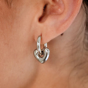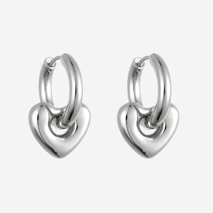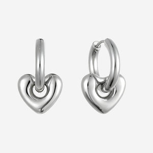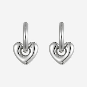 Designed with a sleek classic huggie silhouette and finished with a softly sculpted puffy heart charm, these earrings bring effortless elegance to any look. Lightweight, polished, and perfectly sized for everyday wear.
