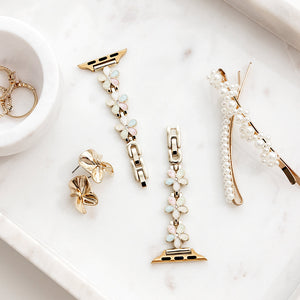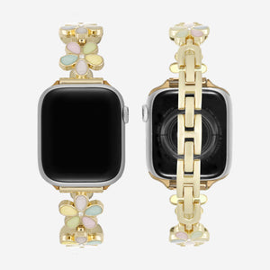 Care & Cleaning: Band is not designed for use in water. Clean the band with cloth immediately after exposure to moisture to maintain condition of band. Taking care not to dislodge the delicate inlaid crystals.