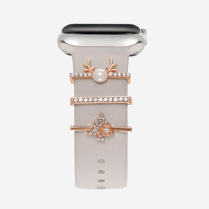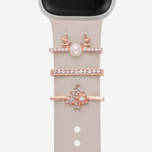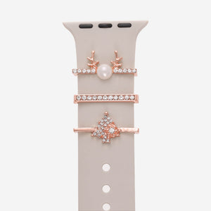 Designed to be worn with our Classic Silicone Bands, this set features a sparkling Christmas tree, a reindeer charm and a delicate rhinestone bar to add the perfect amount of holiday cheer to your Apple Watch.