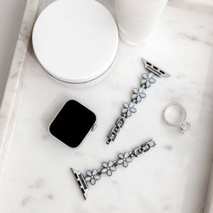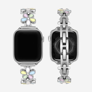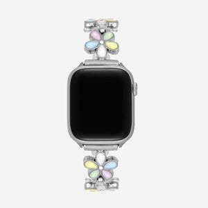 Care & Cleaning: Band is not designed for use in water. Clean the band with cloth immediately after exposure to moisture to maintain condition of band. Taking care not to dislodge the delicate inlaid crystals.