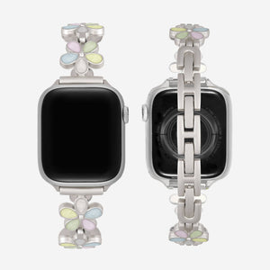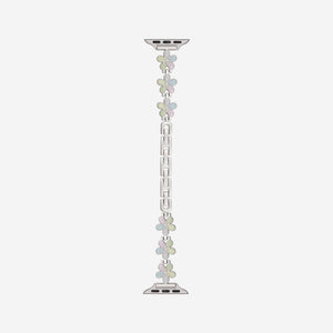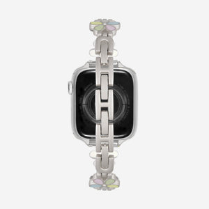 Care & Cleaning: Band is not designed for use in water. Clean the band with cloth immediately after exposure to moisture to maintain condition of band. Taking care not to dislodge the delicate inlaid crystals.